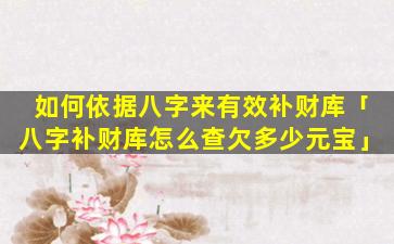 “八字补财库”和“欠”多 🐘 少元宝 🐼 是民间迷 🦄 信说法,缺乏科学依据。