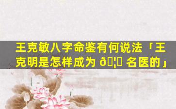 王克明成为名医的过程是一个不断学习、探、索实践的历程。他 🦍 将传统中 🐴 医精髓与现代医学技术相结合不断,创。新、突、破精,湛的医。术丰富的临床经验崇高的职业操守造就了他的名医之路