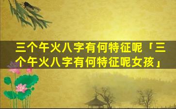 三个 🌹 午 🐞 火 🐒 八字的女命特征: