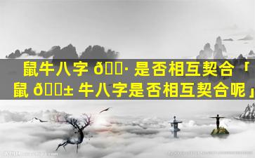 鼠牛 🌿 八字之间是否相互契合取决于具体八 🐈 字组合。