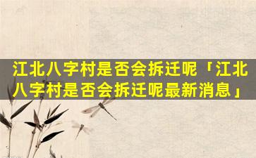 截至目前,我没有找到关于江北八字村今 🐈 年拆迁的官方信息。建。议您联系 💮 当地政府部门或相关房地产机构获取最新 🕸 消息