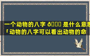 动物的八字指的是一种传统中国命 🐴 理学,用来推算动物的命运和运 🕊 势八字。由八,个字组成分别代表年、月、日、时,每,个字。又,有、天、干 🐠 和。地支共计八个字通过八字可以推算出动物的性格运势吉凶祸福等信息