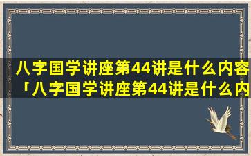 “八字国学讲座第讲44的”主要内容 🐎 :