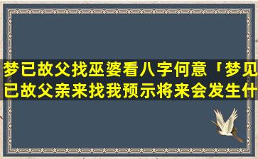 寻求指引:八 🦆 字是一种算命术,梦,中父亲找巫婆看八字可能暗示你正在寻求指引或解决方案而你认为已故父亲可以为你提供 🐕 帮助。