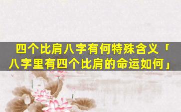 比肩也代表着事业和竞争,四,个比肩,的 🌵 人在事业上往往比较稳定不容 💐 易受他人影响但同时也有可能缺乏竞争力。