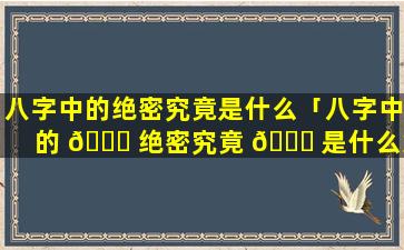 在八字命 🦍 理学中,绝,密是一个特殊术语指的是八字中特定组合的一组天干地支绝密。通。常与特殊 🍁 命格和运势相关联