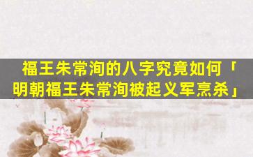 福 🌸 王朱常洵的悲 🌼 惨结局 🐳