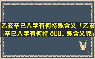 乙亥辛巳八字在命 🦄 理学中有一些特殊含义: