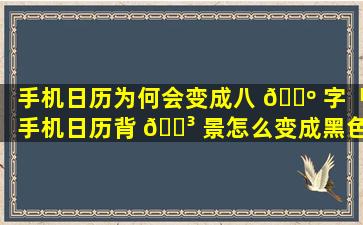 手机日历通常不会变成“八字八 🕸 字”。是一种中国传统 🐯 命理学中使用的概念,指。人的,出。生年月日时对应的干支手机日历通常显示的是公历或农历日期不会涉及八字