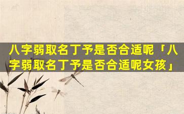八字弱是指命主八字中五行生扶力量不足,导致命理偏弱是。否取名“丁予”合适需要结合命主的八字格局 🐈 、喜。忌等具体因素综合判断