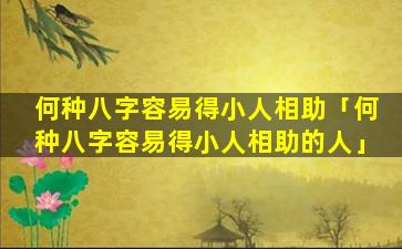 八字容易得 🐟 小 🐟 人相 🍀 助的特征: