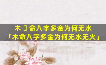 木命水多缺金的 🐬 情况是指在八 🦢 字命理学中: