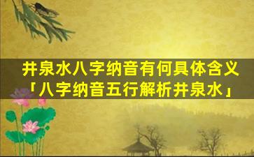 八 🌷 字纳音五行解析 ☘ :井泉水