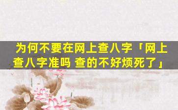 因此,建议 🐼 不要 💮 在网上查八字。如,果。您希望获得专业的八字解释请咨询有信誉的八字命理师