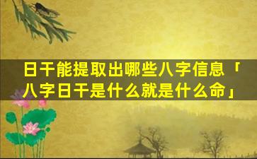 日干在八字中代表命主本人,可以 🐞 提取以下信 🦍 息: