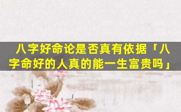 结论八字好命论作为一种古老 🐒 的命理学体系,具,有一,定的文化和历史价值但其科学依据有限不能完全用于预测个体命运个。人命,运受到多种因素影响包括先天的基因、后天的、教,育。人际关系和社会环境等不可一概而论