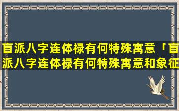 盲派八字连 🍀 体禄的特殊寓 🐧 意和象征 🐧