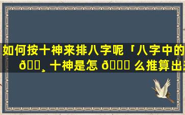 根据八字中的天干地支 🐼 与日主的关系,将十 🐕 神(比肩、劫、财、食神、伤、官、正、财、偏、财正官偏官正 🦁 印偏印)分别排布在八字的各个位置。