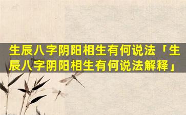 生辰八 🌼 字阴阳 🌸 相生的说法