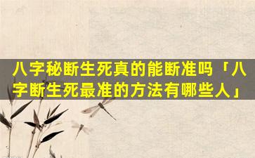 八字秘断生死是一种传统的手相占卜方法,声称可以通过一个人的八字推断其寿命长短 💐 。这种方法,缺。乏科学依据其准确性并无科学支持