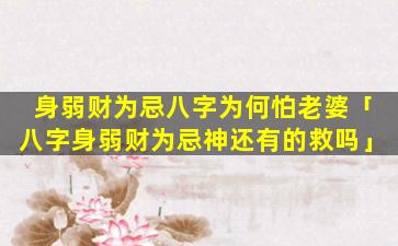 八字 🐬 身弱财弱不一 🦢 定是不好。