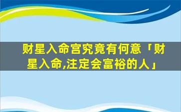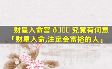 财星入命 🐱 宫,在,紫微斗数中指财帛宫的星曜入驻命宫。