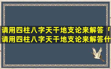 用四柱 🐘 八 🐶 字论 🐡 来解答