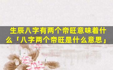 生辰 🦈 八字 🦉 中有两个帝 🐝 旺意味着: