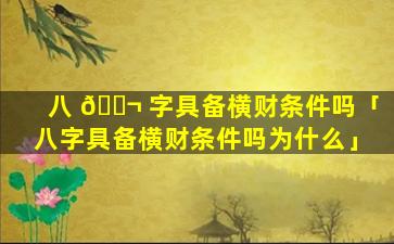 仅凭提供的信息无 🐱 法判断您的八字是否具备横财条件。
