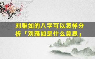 汉语人名:刘雅如是 🐯 常见的汉语女性姓名,包含以下含义: