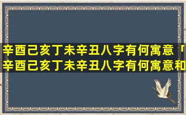 辛酉 🌺 、己、亥、丁未辛丑八字 ☘ 的寓意 🐦 如下: