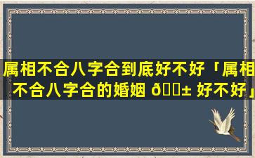 从命理学 🐵 角度来 🌹 看,“属相不合八字合”的,婚 🌻 姻吉凶与否需要具体分析不能一概而论: