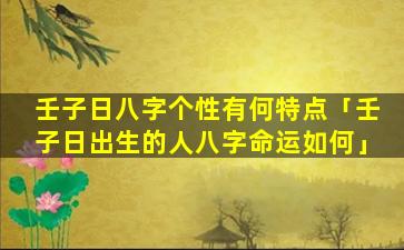 壬子日出 🦊 生人的 💮 特点 🐧 :