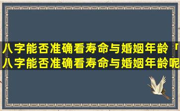 八字是否 🐕 能准 🐴 确看寿命与婚姻年龄