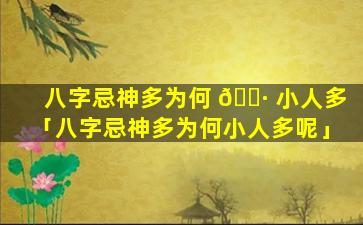 八字 🐞 忌神多为何小人 🦍 多的关联: