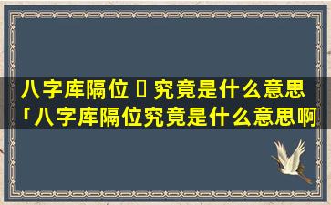 八字库隔位八 🌹 字库隔位是指日柱地支 🦄 与其他地支相隔一 🐶 个或多个地支的情况。