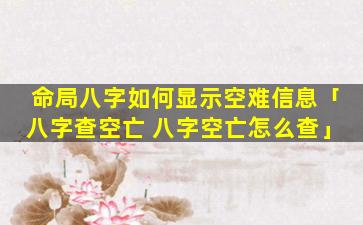 空亡的判断如果八字中 🦉 出现了上述任一种空亡情况,则表示命主 🐡 命中空亡。