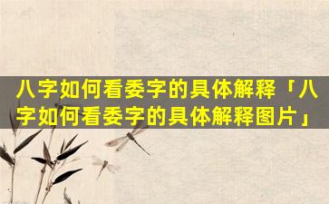 委字在八字中 🦢 ,代表着: