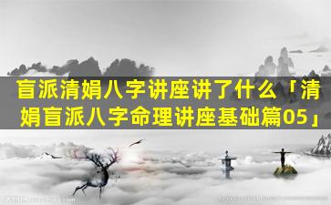 清娟盲派八字 🐎 命 🦍 理讲座基础 ☘ 篇 05