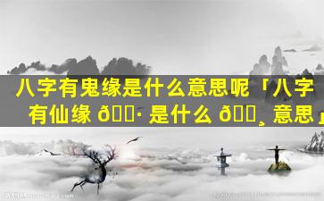 在中国傳統文化中,八字有「鬼緣 🦋 」的,说法指一個人的八字中與陰間或鬼神有較強的聯繫。