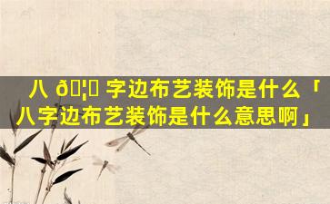 “八字 🦅 边”:装饰边缘呈波浪形形,状“类”似于汉字八的形状 🐘 。