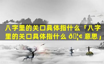 在八字命理中 🌷 ,“关口”是,指出生八字中出现以下特定的组合配置通 🐒 常预示着个人人生中重大 🦢 事件或转折点的发生。
