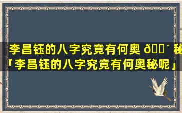 李昌钰的八字身强财旺,食,神,制,杀正官得 🦟 令驿马动可谓是富贵显达之命。而,驿,马。逢冲的格局也暗示了他会奔波劳碌在异乡发展壮大