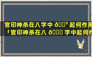 官印 🌾 神杀 🐳 在八字 🐒 中的作用: