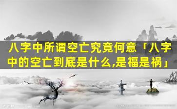 在八字命理学 🐺 中,空,亡是指某一个生支或地支的纳音五行在八字天干地支中完全没有出现这表示该五行在命 🐎 主的一 🐴 生中处于空的状态。