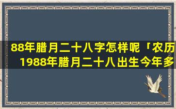 根据农 🐱 历纪年法农历年,腊1988月二十八出生的人今年年(2023虚)岁岁36周,岁岁35。