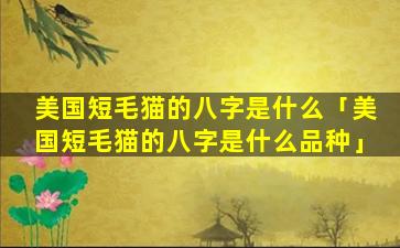 美国短毛猫没有特定的“八字八字”。是传统中医的一种诊断工具,用。于评估一个人的健康和命 🌹 运
