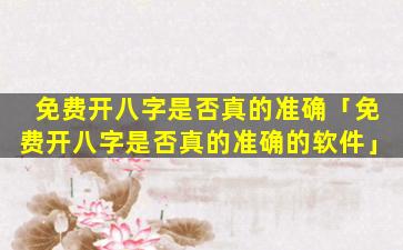 一些免费八字软件可能相 🐯 当准确,而另一些则可能不那么准确。如,果准确,性,非。常重要建议 🐒 使用付费的八字服务因为它更有可能使用经过验证的算法和数据源并提供更全面的结果