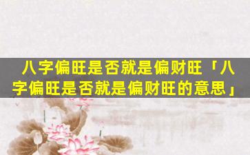 八字偏旺只表示日主偏强,需要用印星、比劫来调和。而偏,财旺。则表示命局中偏财星旺盛这需要根据八字的具体组合来 🦊 判断