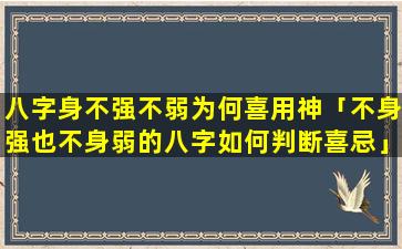 不 🍀 身强也不 🌺 身弱八字的喜忌判 🐼 断